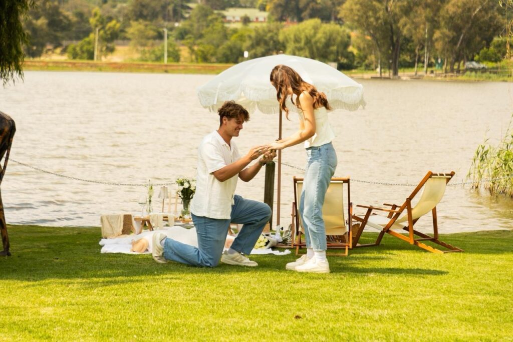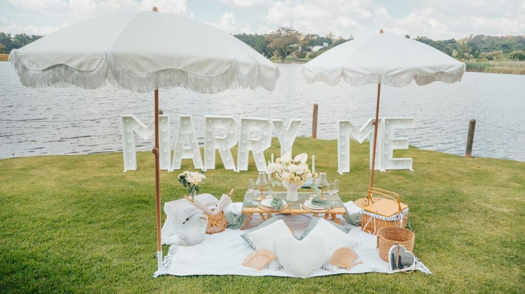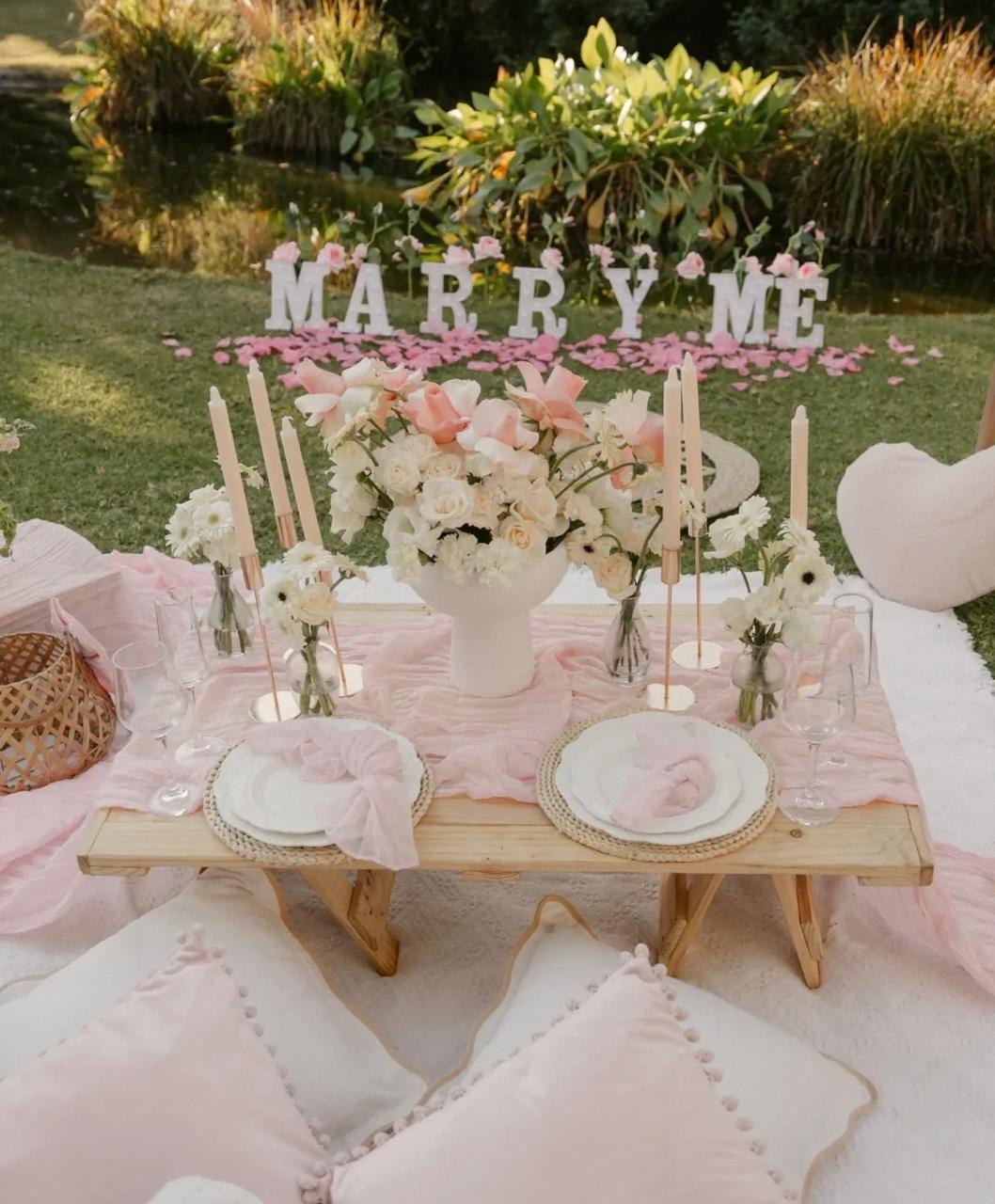 PROPOSAL PICNIC WITH MARRY ME MARQUEE LETTERS